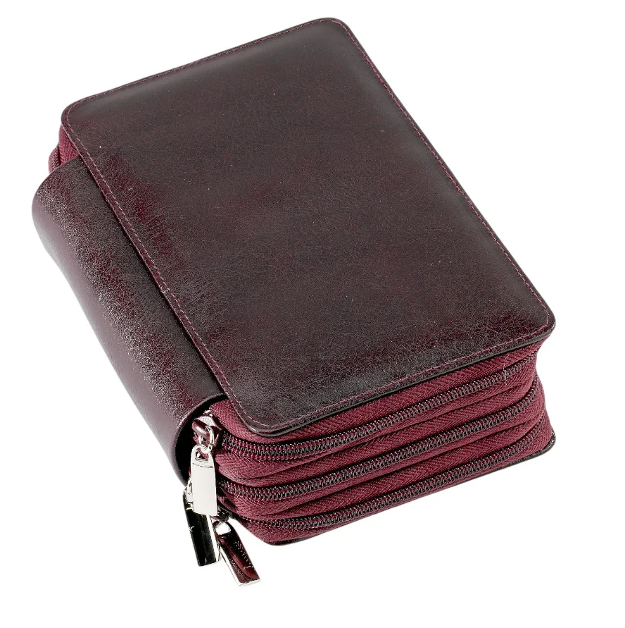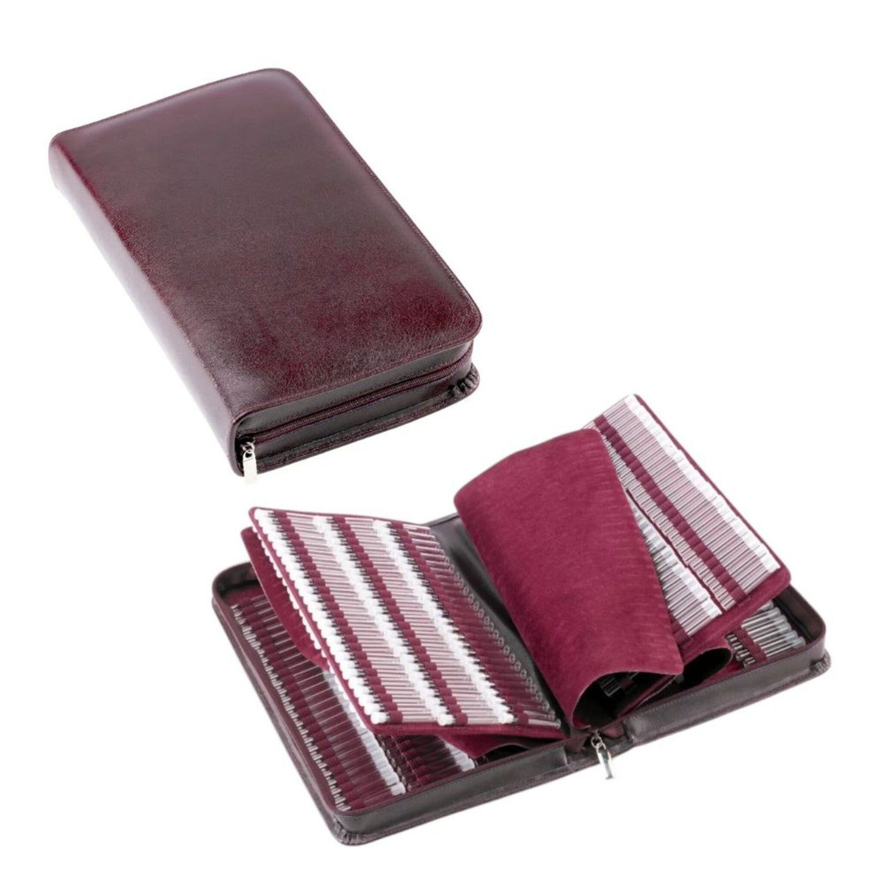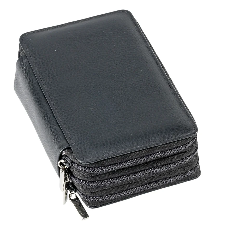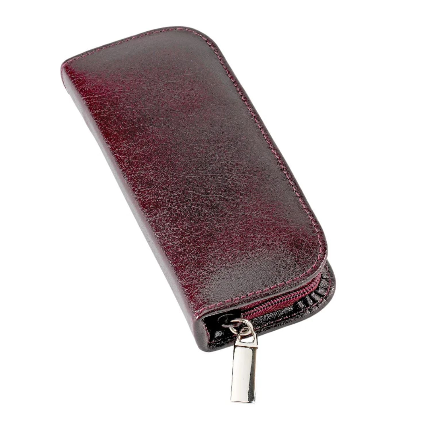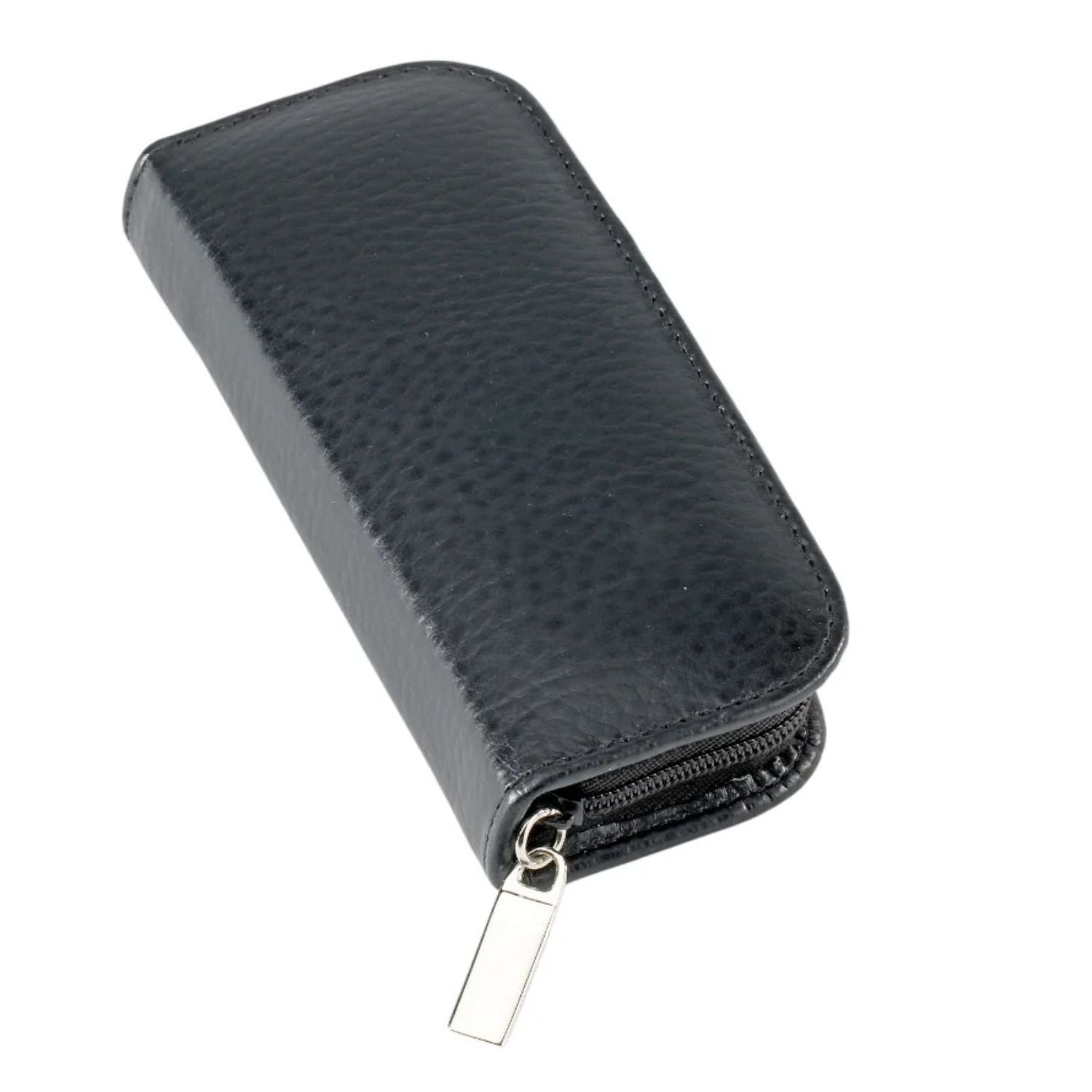 The inner lining is made of durable, fine fabric. The color-coordinated inner loops make it easy to insert the glasses. A durable zipper that matches the color of the leather ensures a secure closure. The chrome-plated zipper gives the bag a classy touch.