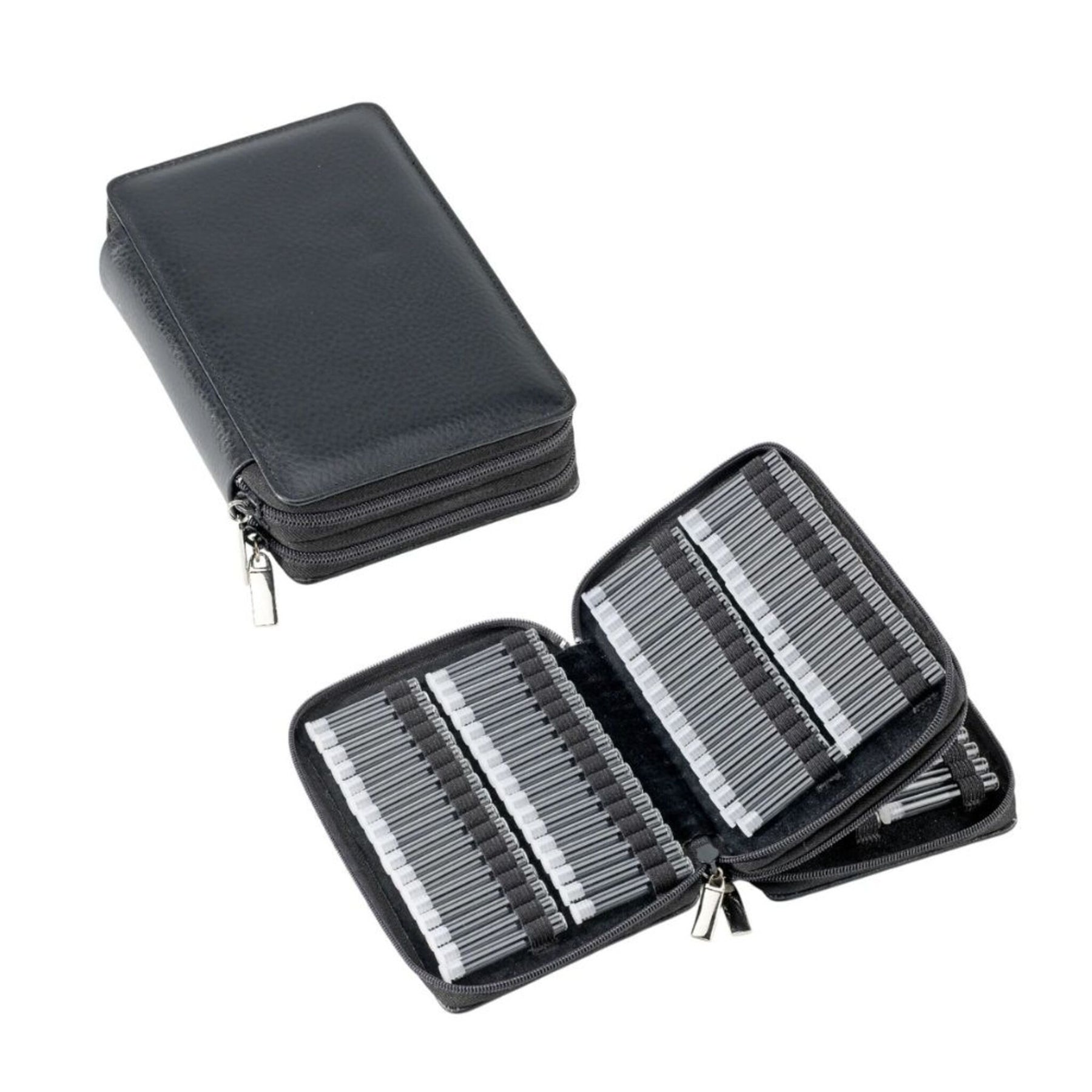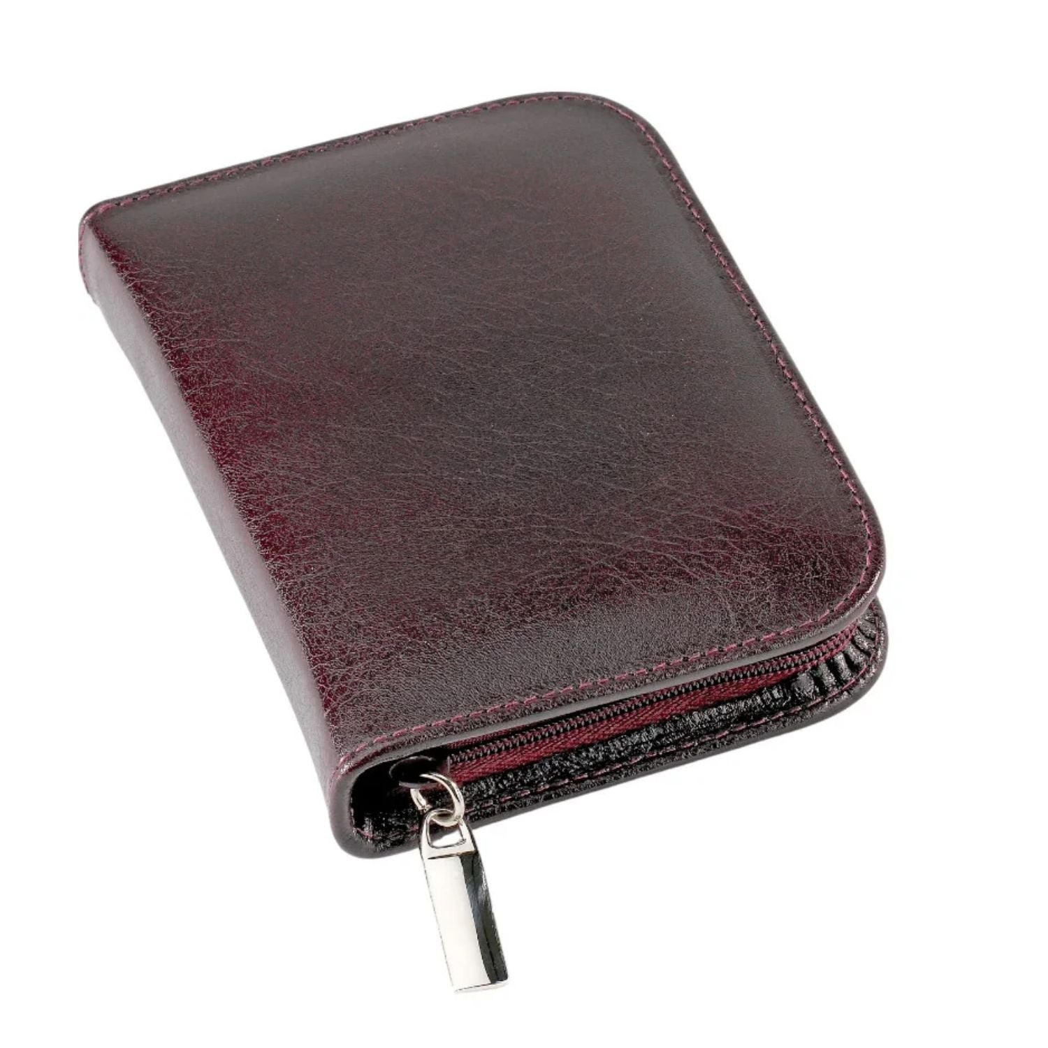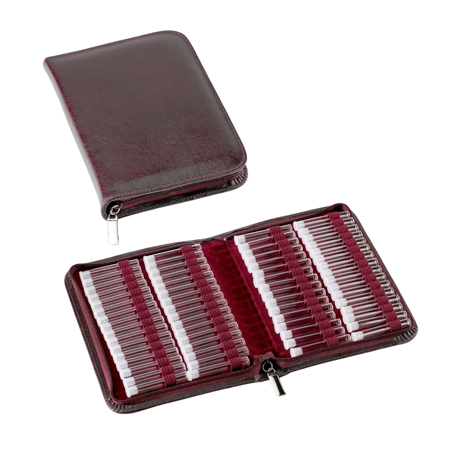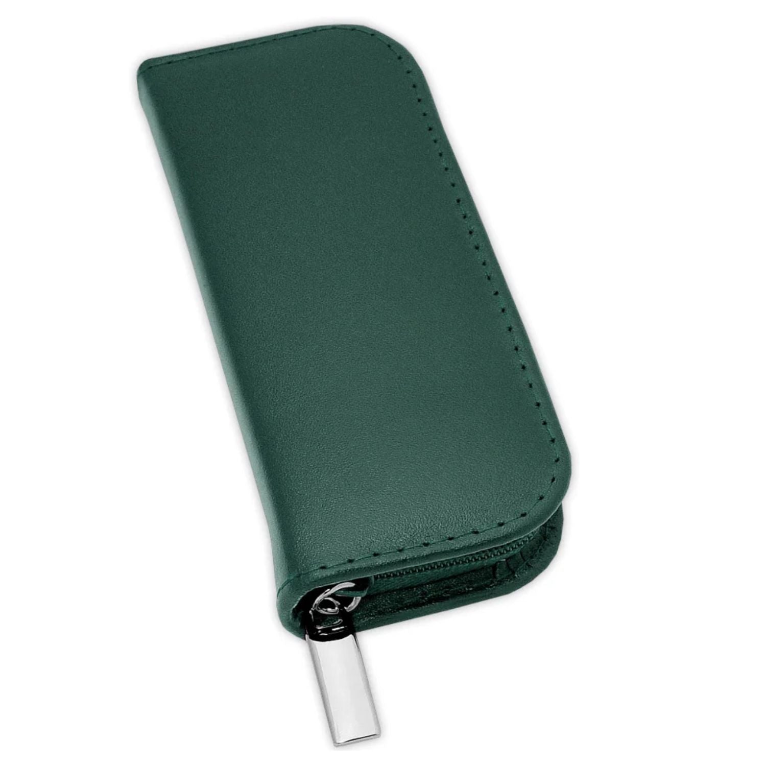 The inner lining is made of durable, fine fabric. The color-coordinated inner loops make it easy to insert the glasses. A durable zipper that matches the color of the leather ensures a secure closure. The chrome-plated zipper gives the bag a classy touch.