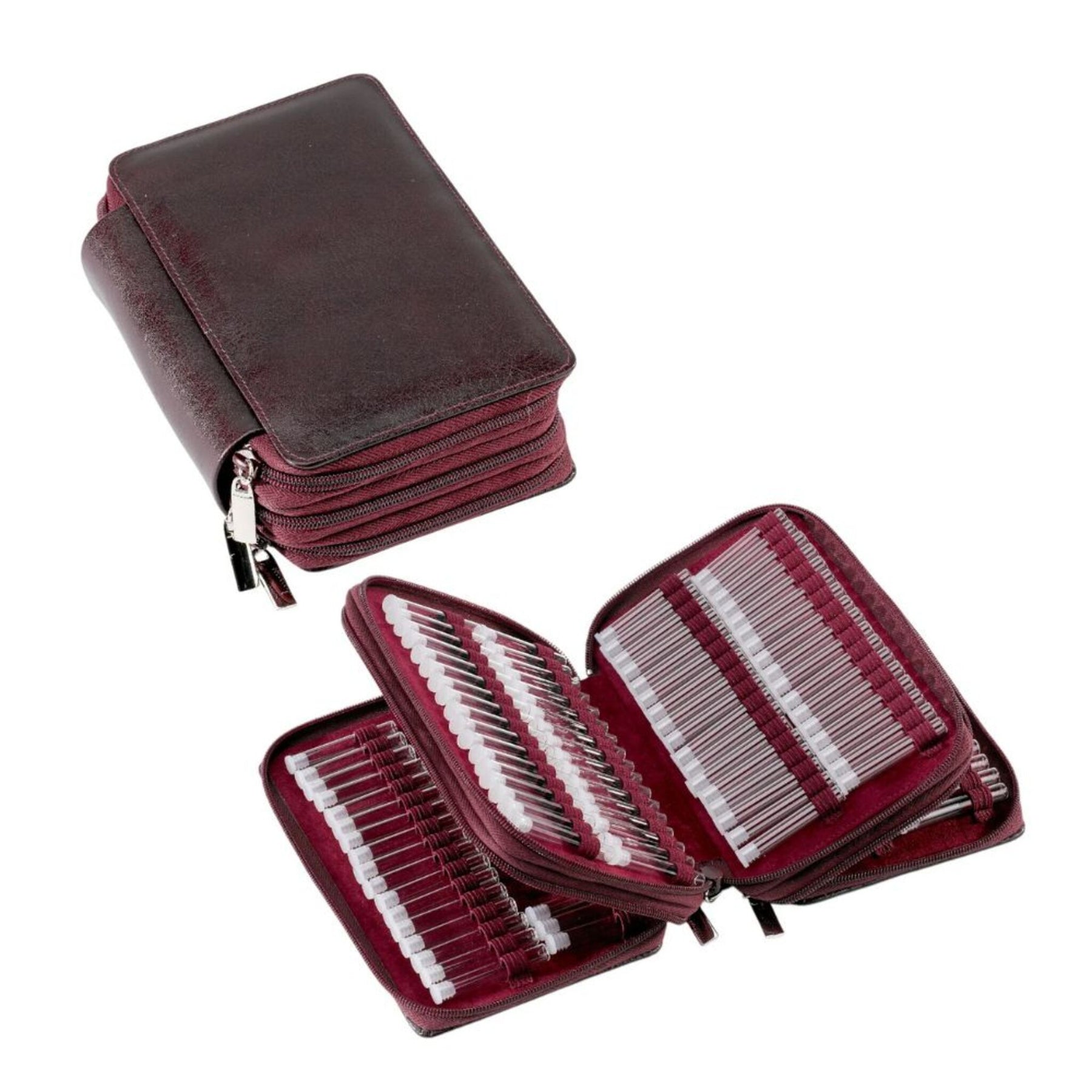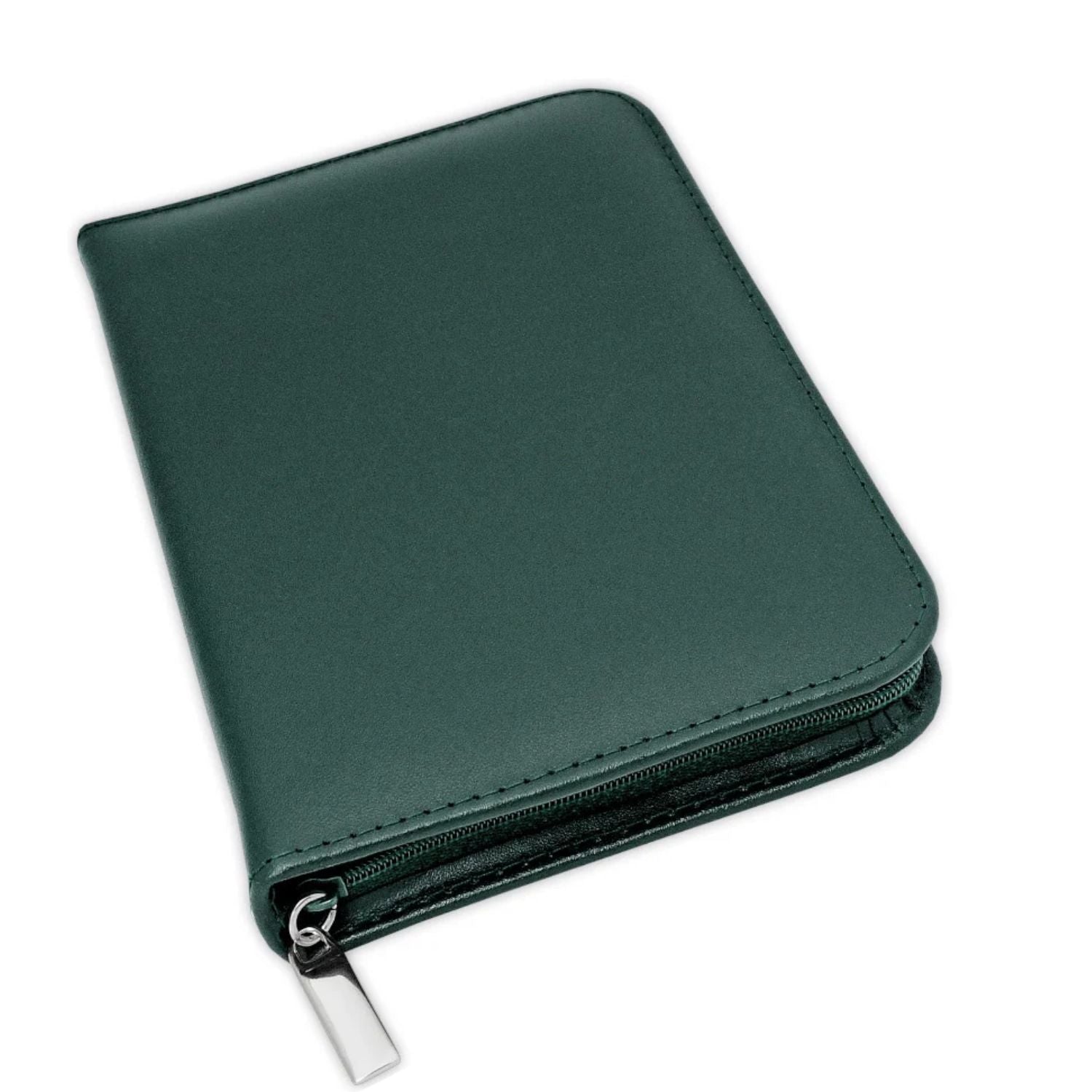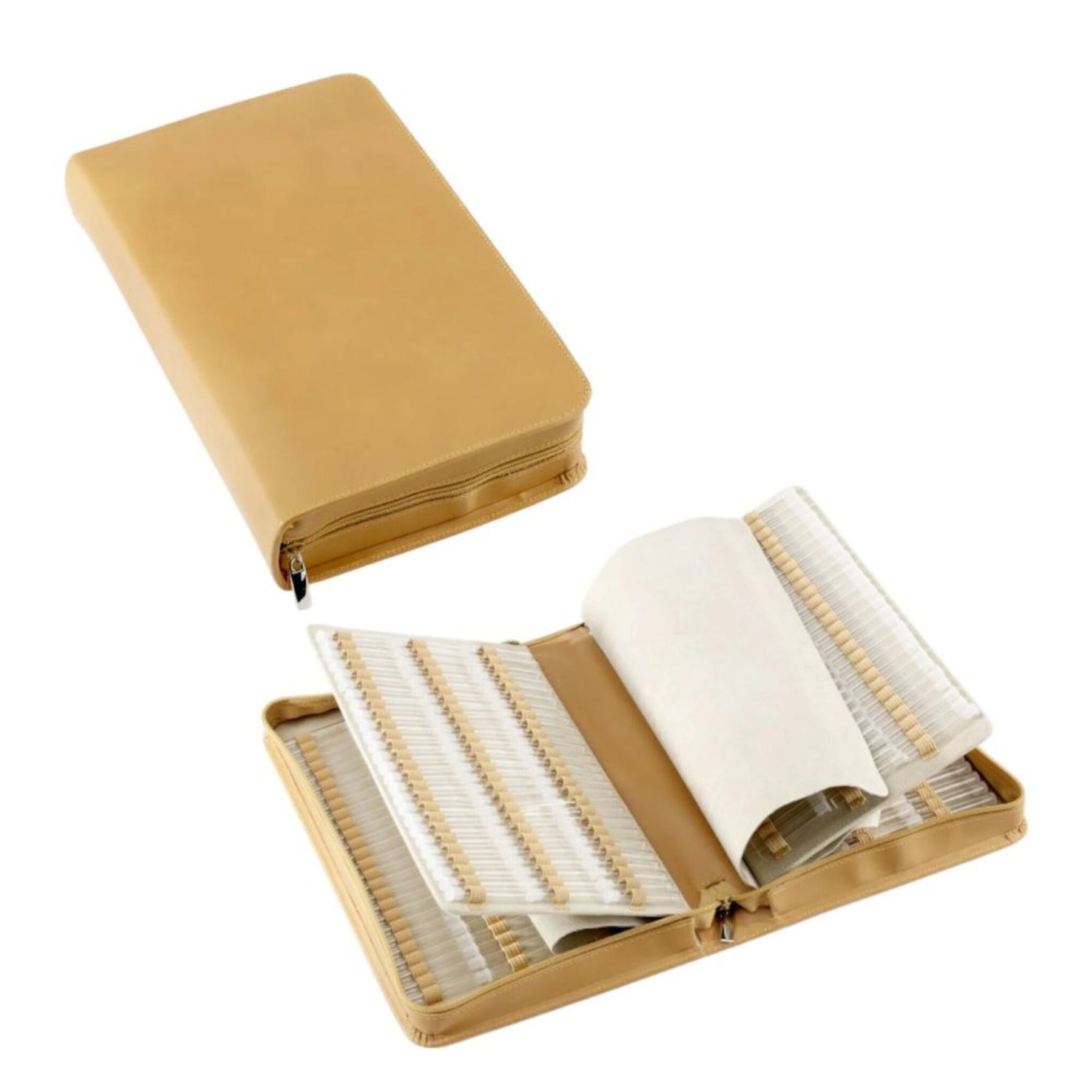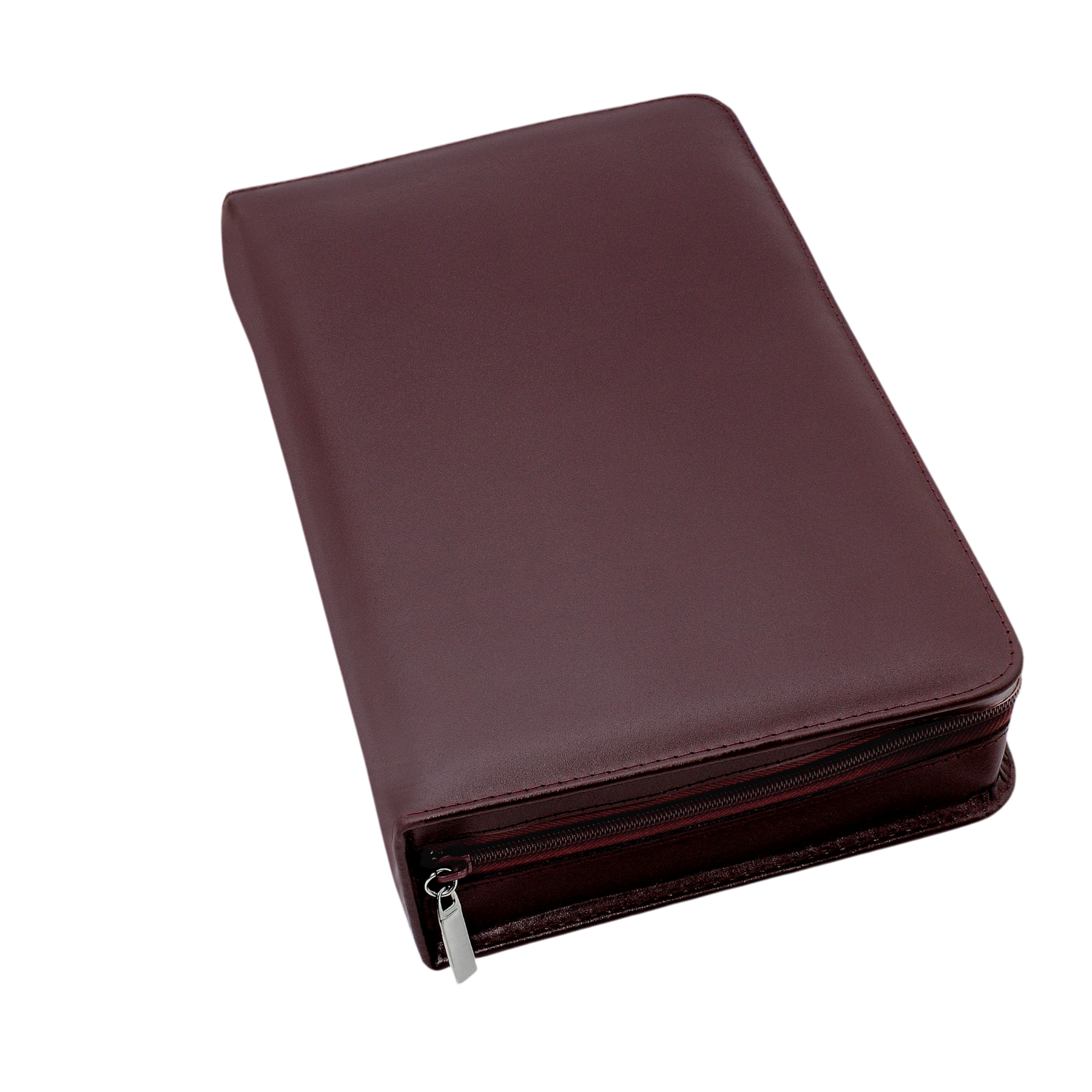 The inner lining is made of durable, fine fabric. The color-coordinated inner loops make it easy to insert the glasses. A durable zipper that matches the color of the leather ensures a secure closure. The chrome-plated zipper gives the bag a classy touch.