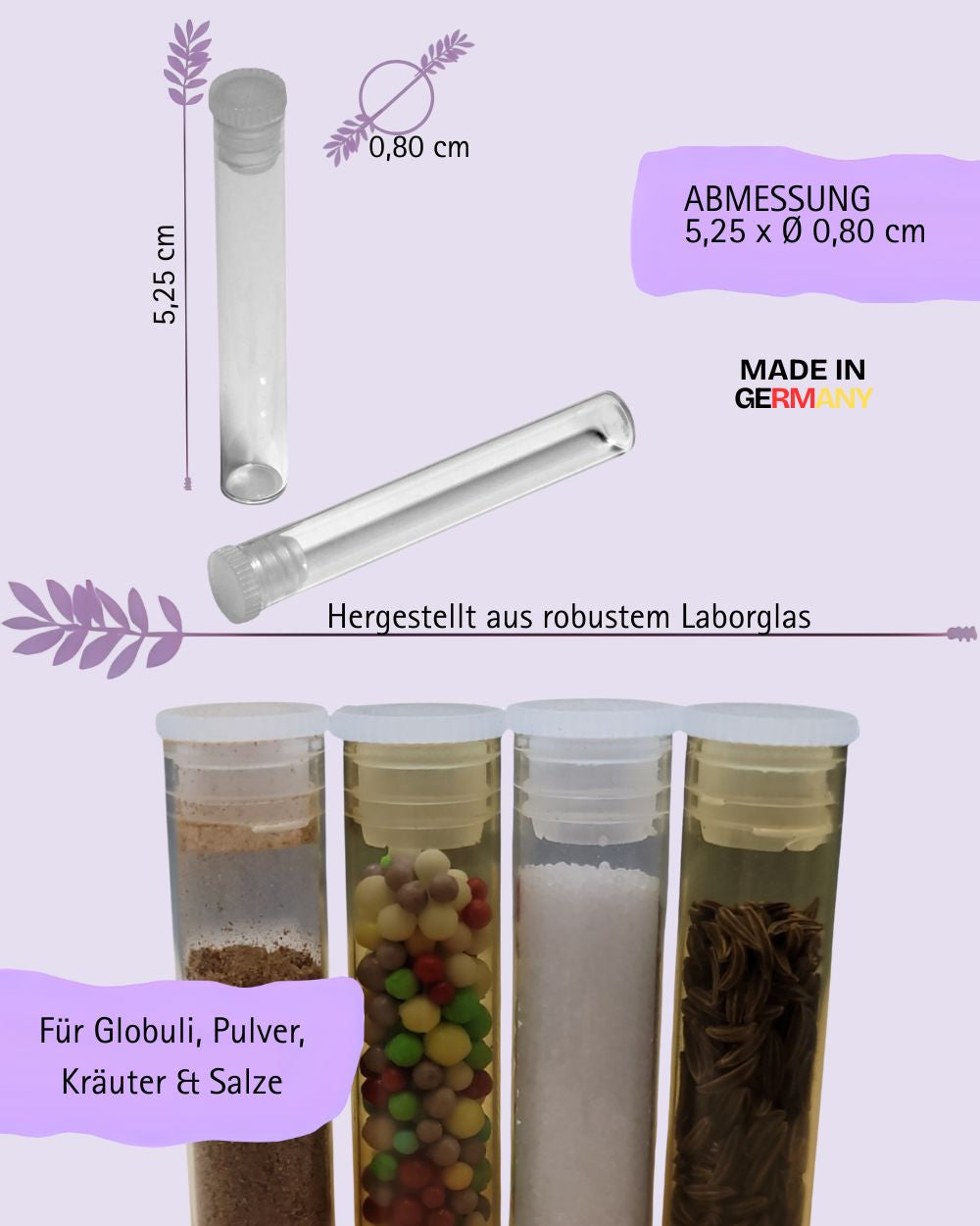Globuli Röhrchen 52,5mm x Ø 8mm